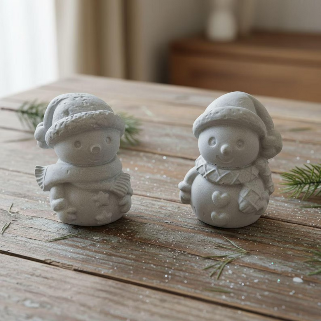 Handmade Concrete Snowman Figurines, Minimalist Christmas Decor, Winter Mantel Ornaments, Rustic Holiday Table Decorations, Gift Set of TwoHandmade Concrete Snowman Figurines, Minimalist Christmas Decor, Winter Mantel Ornaments