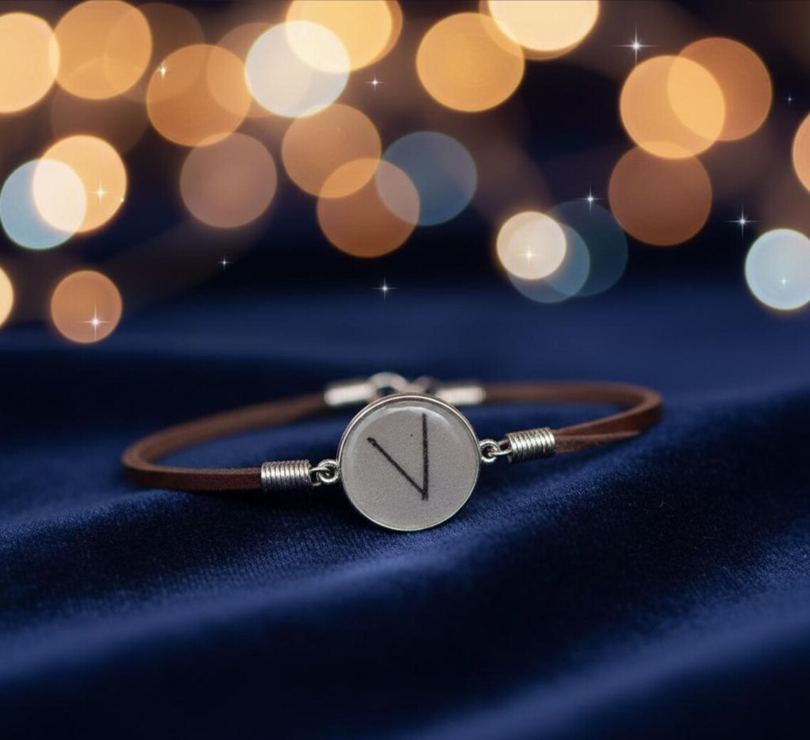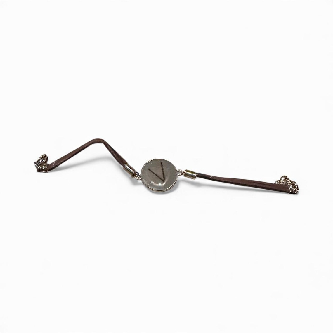 Cement Rune Bracelet With V Symbol, Victory Protection Charm, Minimalist Adjustable Cloth Cord Jewelry