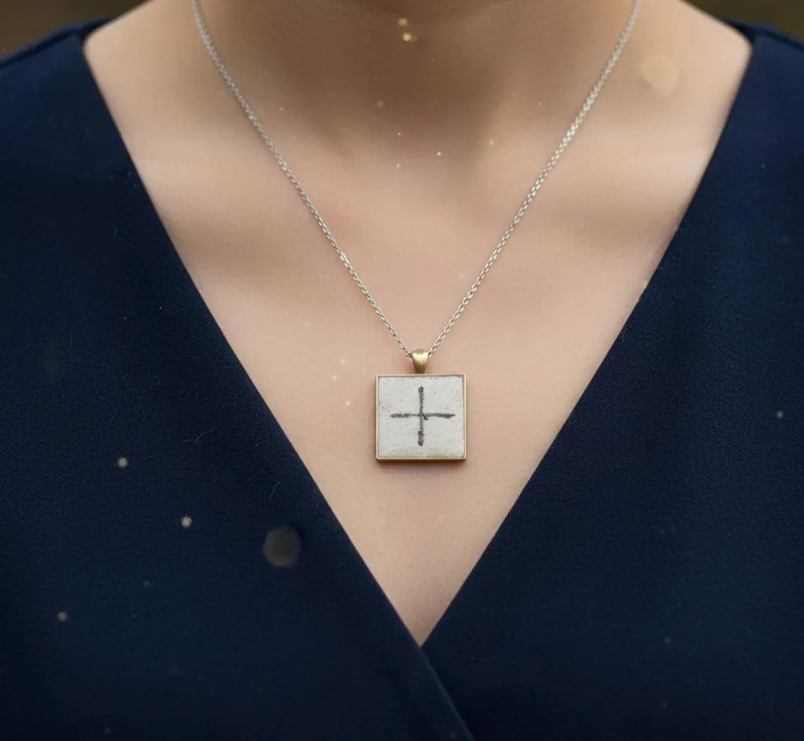 Bring meaning, grounding, and ancient symbolism into your everyday style with this handmade concrete pendant featuring a hand-drawn equal-armed cross in deep black, finished with a smooth, protective resin seal. Each piece is carefully poured, sanded, detailed, and sealed by hand — making every pendant one-of-a-kind.