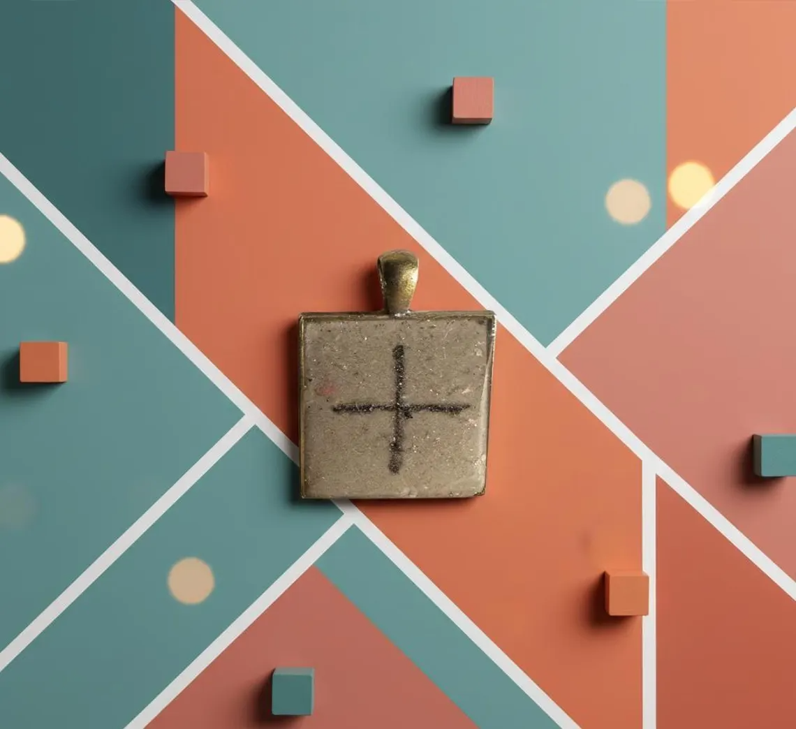 Design: Square geometric pendant with centered cross/plus symbol