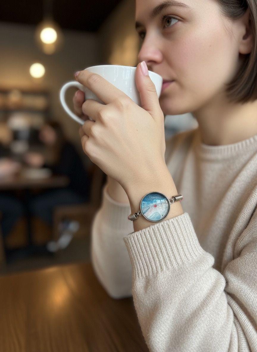 This bracelet captures the magical moment when ocean meets sky—that ethereal line where turquoise waters blend into pink sunset clouds. Perfect for dreamers, travelers, and anyone who finds peace by the water!