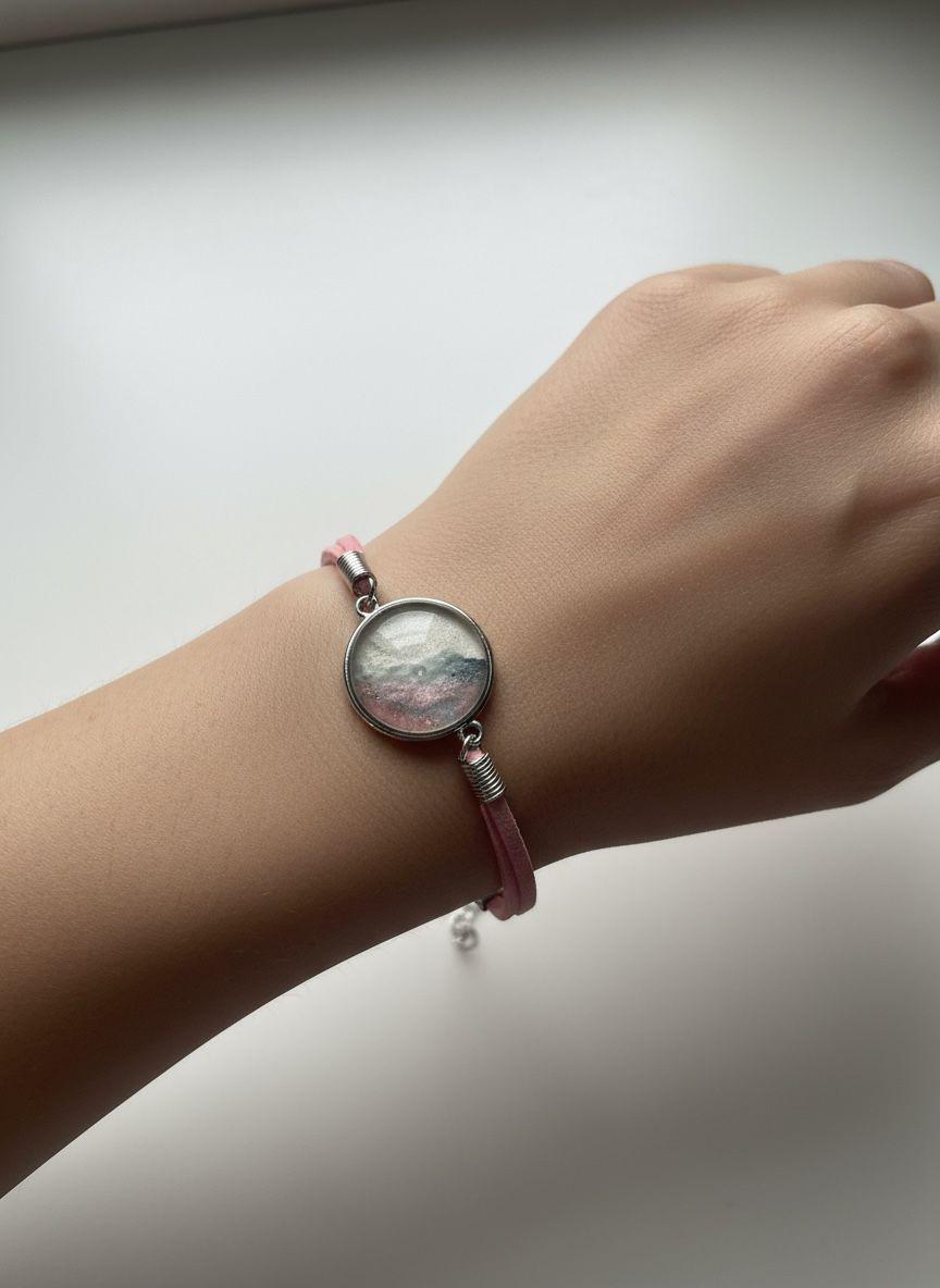 Handmade Resin Art Bracelet, Pink Cloth Cord, Modern Minimalist Jewelry