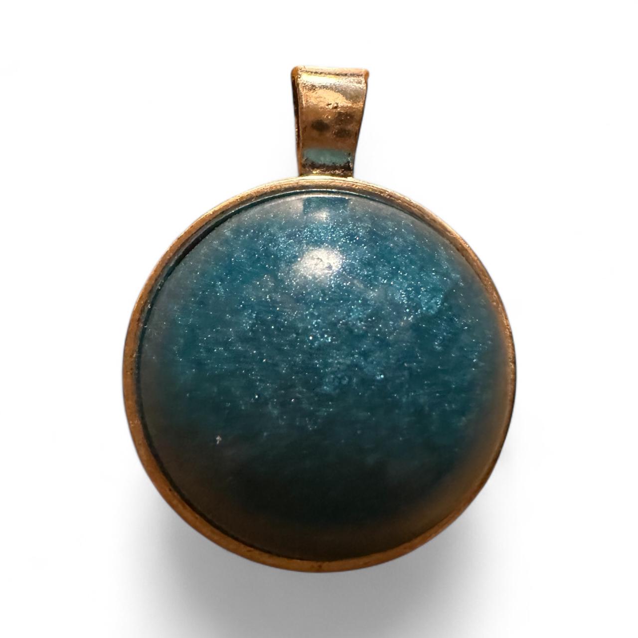 Resin Jewelry Pendant Bold Blue Round Cabochon for Chains or Keychains, No Chain Included