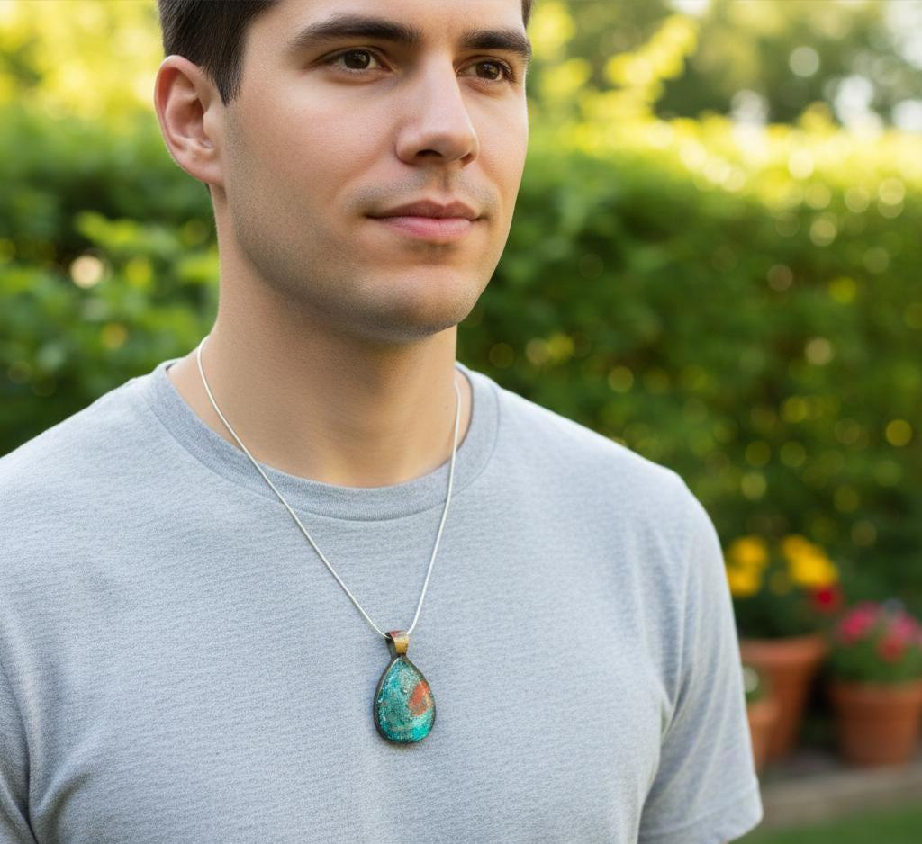 Wear ocean-inspired abstract art with this stunning handmade teardrop pendant that brings tropical beauty to everyday life. Whether you're an ocean enthusiast, abstract art lover, bohemian spirit, or simply someone who appreciates unique handmade jewelry, this wearable masterpiece delivers color, artistry, and quality craftsmanship. At 50% off regular price, this is the perfect opportunity to treat yourself or gift artistic beauty to someone special. Substantial quality feel. Versatile styling. Guaranteed one-of-a-kind.