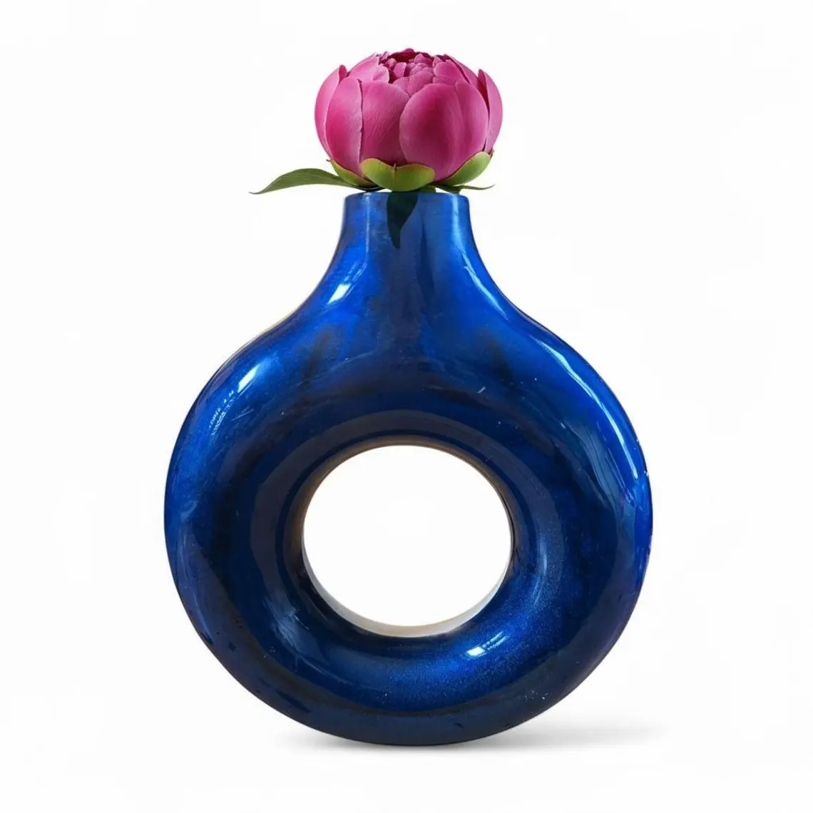 Elevate your home with this stunning handmade modern vase that's equal parts art sculpture and functional flower vessel. This unique piece features a mesmerizing round hole through the center, creating a contemporary architectural design that commands attention from every angle. Crafted from a beautiful fusion of glossy black resin and natural white concrete, the dramatic contrast creates a sophisticated statement piece that works as both a standalone sculpture and a functional vase. The organic round shape combined with the geometric circular opening makes this a true conversation starter—perfect for the modern minimalist, boho chic enthusiast, or anyone who appreciates sculptural home decor that breaks the mold of traditional vases.