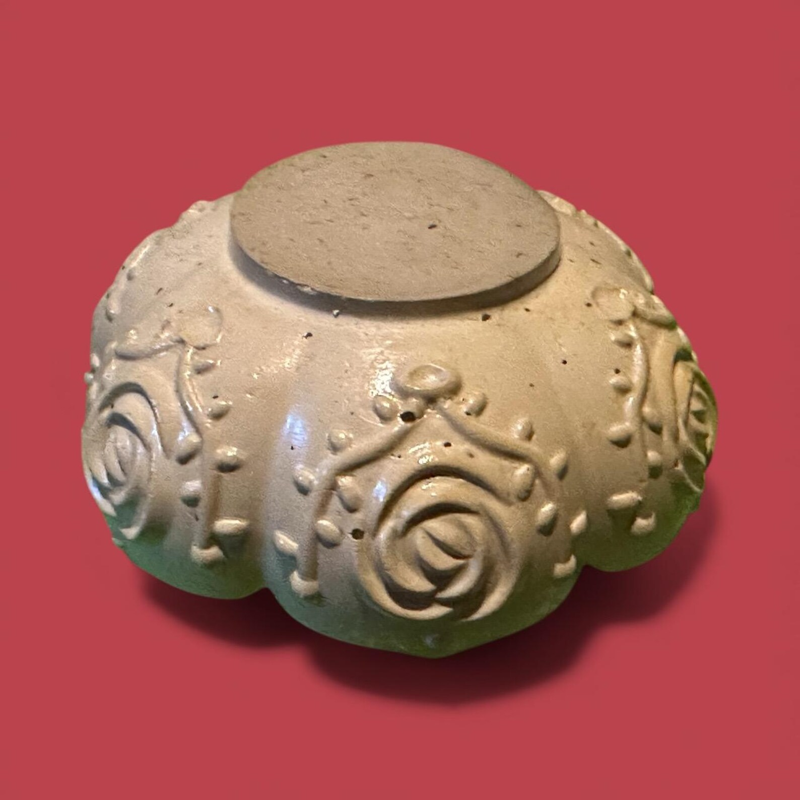 • Hand-poured cement bowl with embossed floral/rose pattern