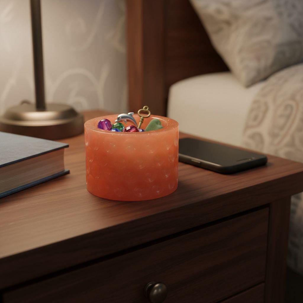 Transform your dresser into boutique-worthy jewelry display by using this jar to store rings, earrings, or small accessories. The coral color adds feminine touch without being overly sweet, working beautifully in both romantic and modern bedroom styles. The see-through effect of resin allows you to spot jewelry quickly while the sparkling texture makes even simple storage look intentional and beautiful. Stack bangles around the outside for layered styling.