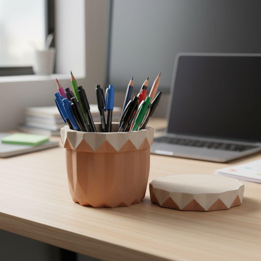 Transform standard desk organization into design-forward workspace by storing supplies in this concrete jar. The industrial material brings edge to home offices while maintaining professional appearance for corporate settings. The neutral concrete won‘t clash with technology or distract from work. The lid keeps supplies contained and the substantial weight prevents accidental tipping. Perfect for creative studios, architecture firms, or anyone who appreciates material honesty.