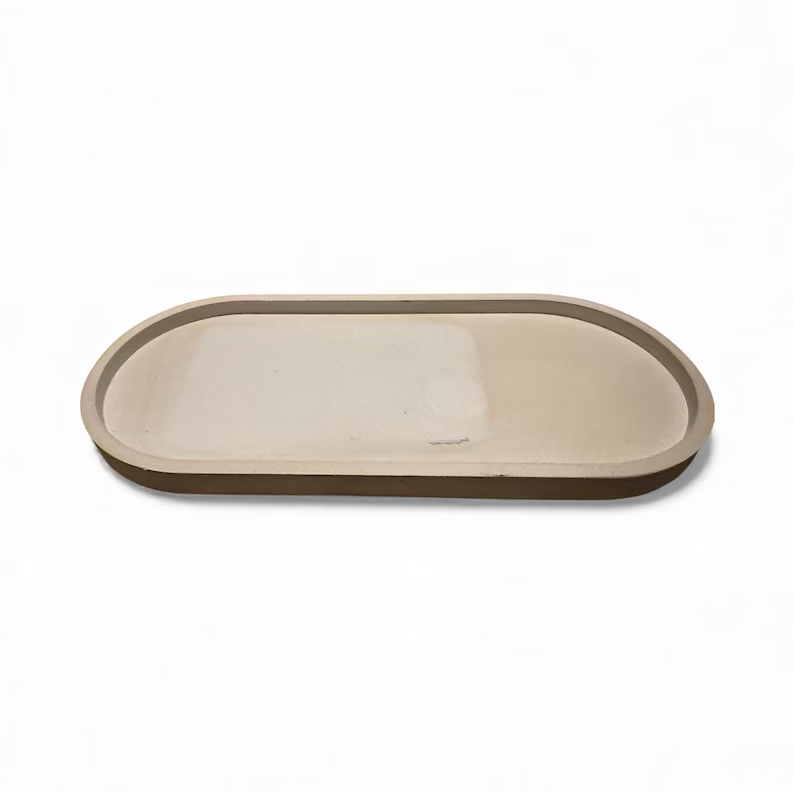 Each concrete tray is individually hand-poured and sealed, making yours truly one-of-a-kind. Natural characteristics like subtle color variations, small air bubbles, mineral deposits, and unique surface patterns are inherent to the concrete casting process and should be celebrated as marks of authentic handmade craftsmanship. These organic variations ensure you receive a piece that's uniquely yours - not mass-produced uniformity. Some trays may display slightly darker or lighter concrete tones, gentle surface texture, or natural patina that develops over time, adding to the piece's artisan character and vintage appeal.