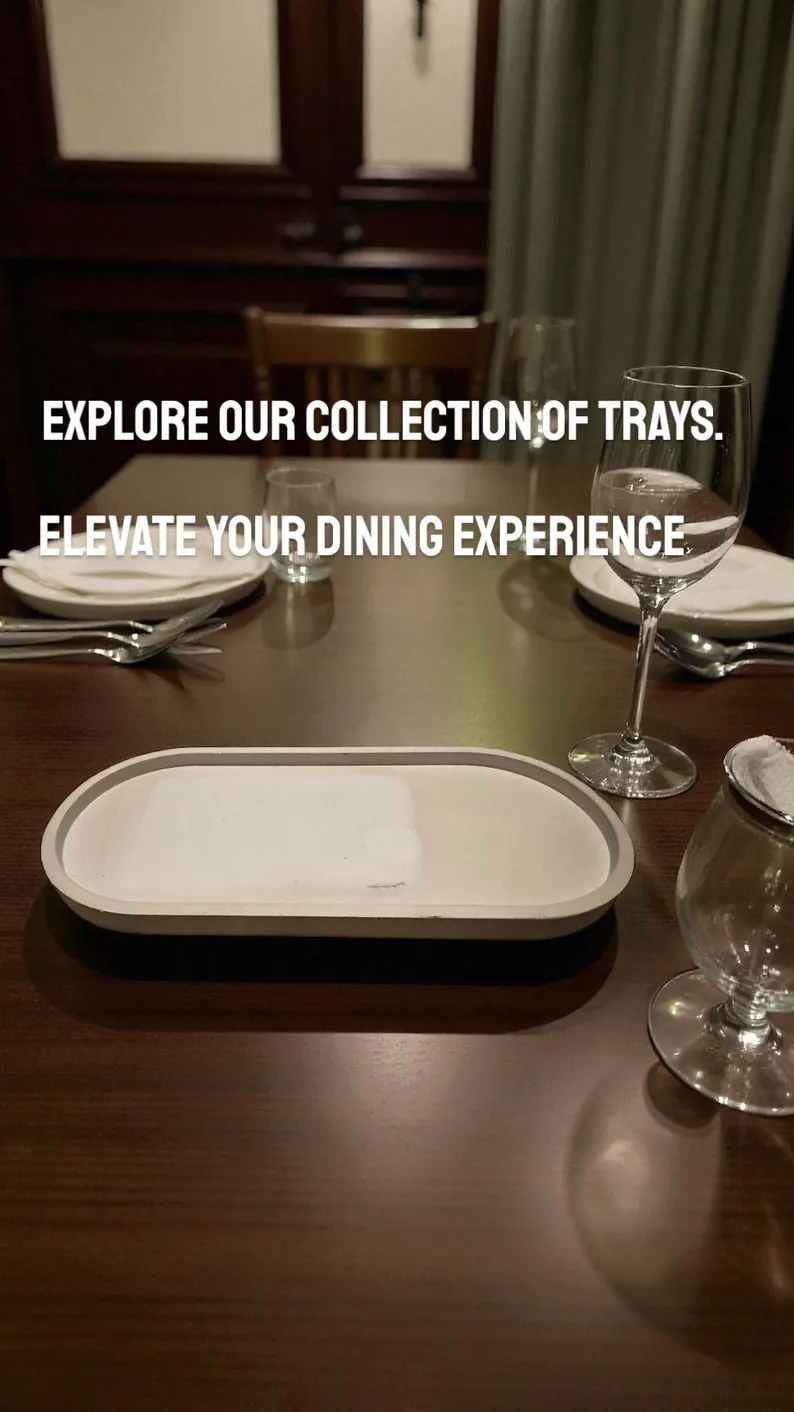 Concrete brings raw, organic beauty into modern homes while offering surprising versatility. This ancient material has been refined for contemporary living - when properly sealed, it becomes a food-safe, water-resistant surface that's both practical and stunning. The natural variations in each pour mean no two trays are identical; subtle color shifts, tiny air pockets, and mineral patterns tell the story of the handmade process. Concrete's substantial feel and cool-to-touch surface create a grounding presence in any space, while the neutral earth tones work seamlessly with every design style from coastal to industrial. We love concrete for its honest simplicity and timeless appeal that only improves with age.