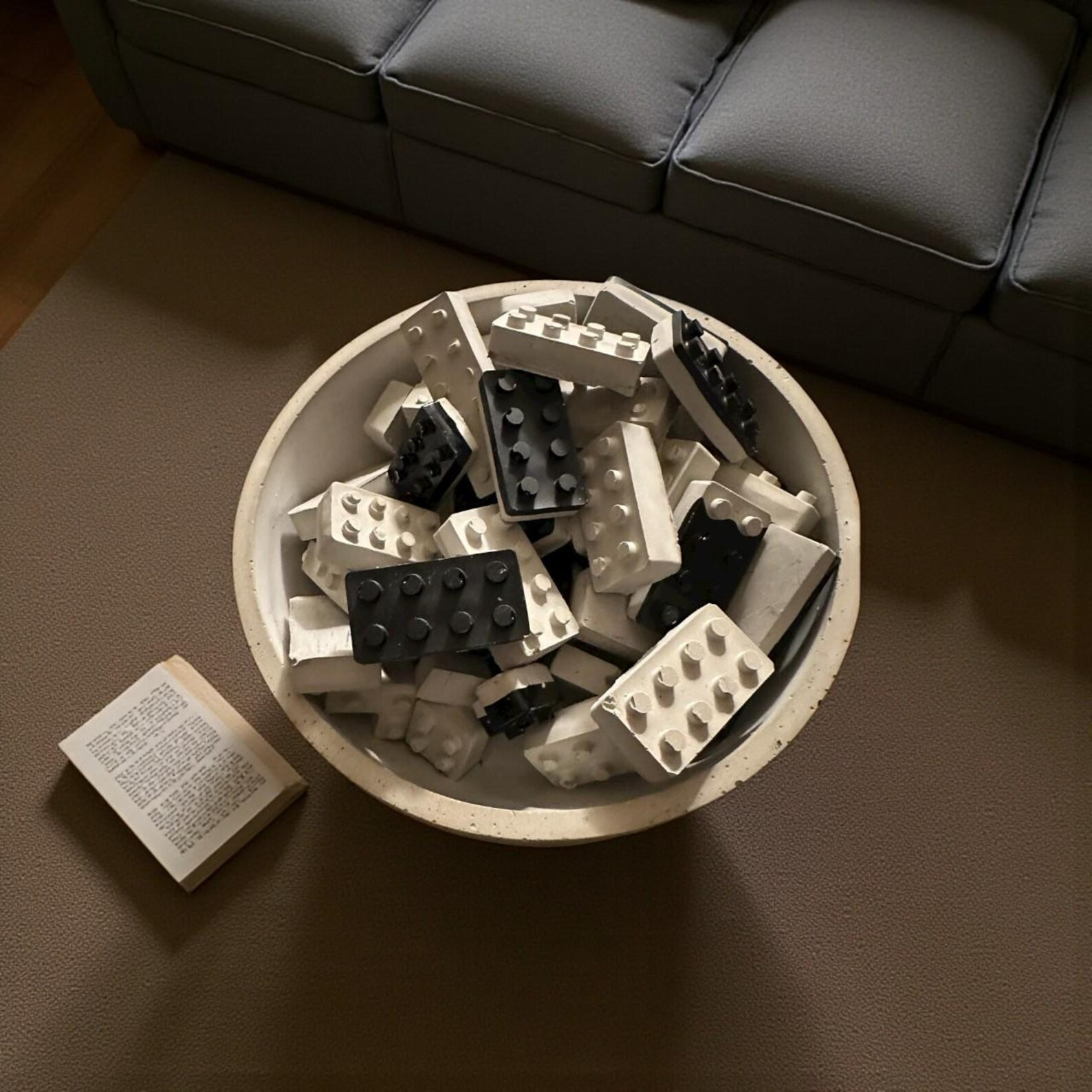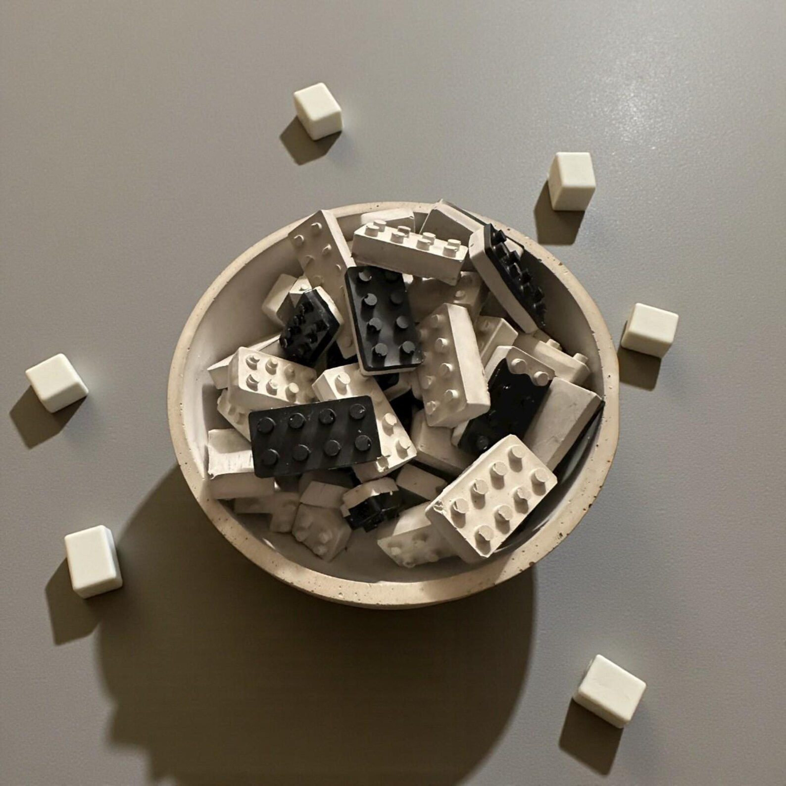 Food Safe Sealed Concrete Building Block Set Large Bowl, Handmade Cement Lego Style Dominos, Modern Desk Decor, Industrial Gift, Fidget Toy