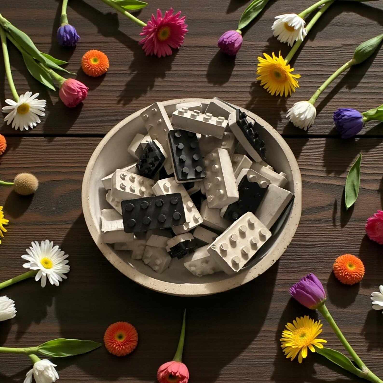 Food Safe Sealed Concrete Building Block Set Small Bowl, Handmade Cement Lego Style Dominos, Desk Fidget Toy, Industrial Gift, Modern Decor