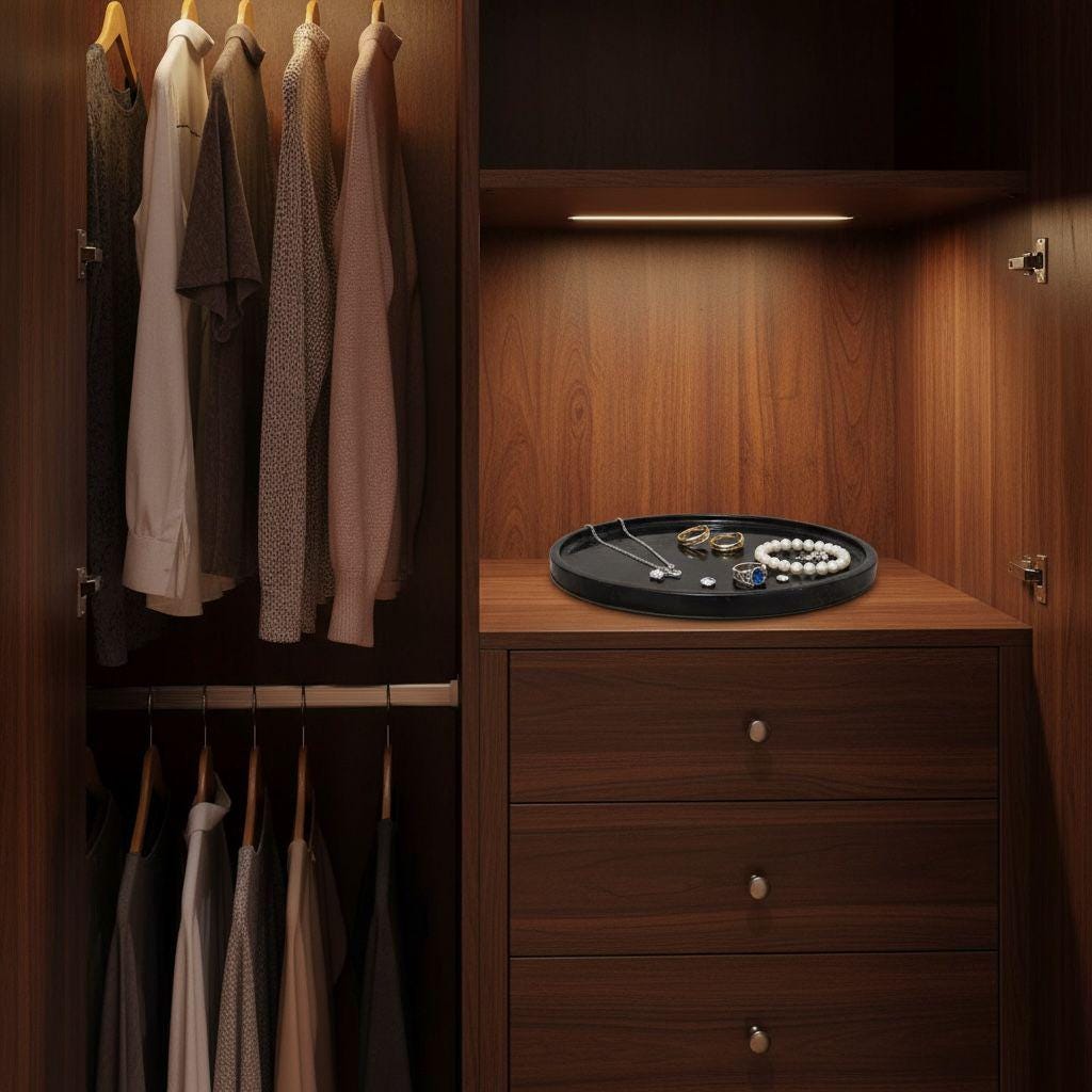 Hold jewelry, rings, earrings, and small accessories on dresser
