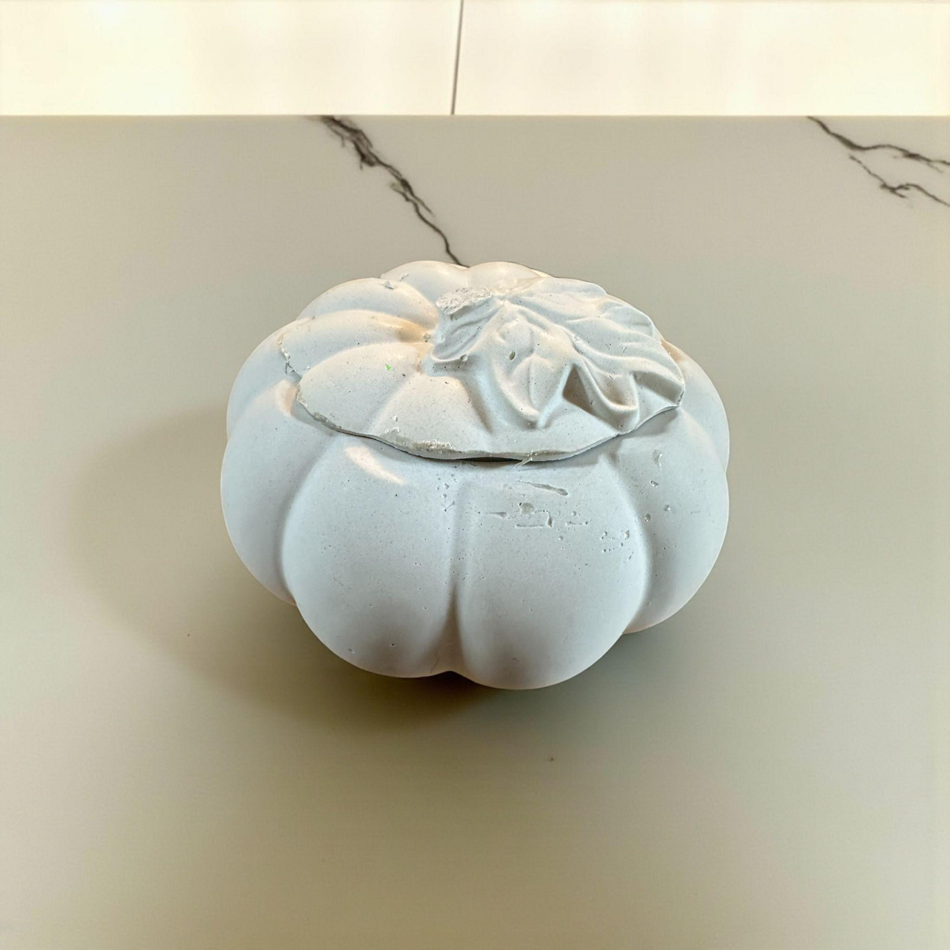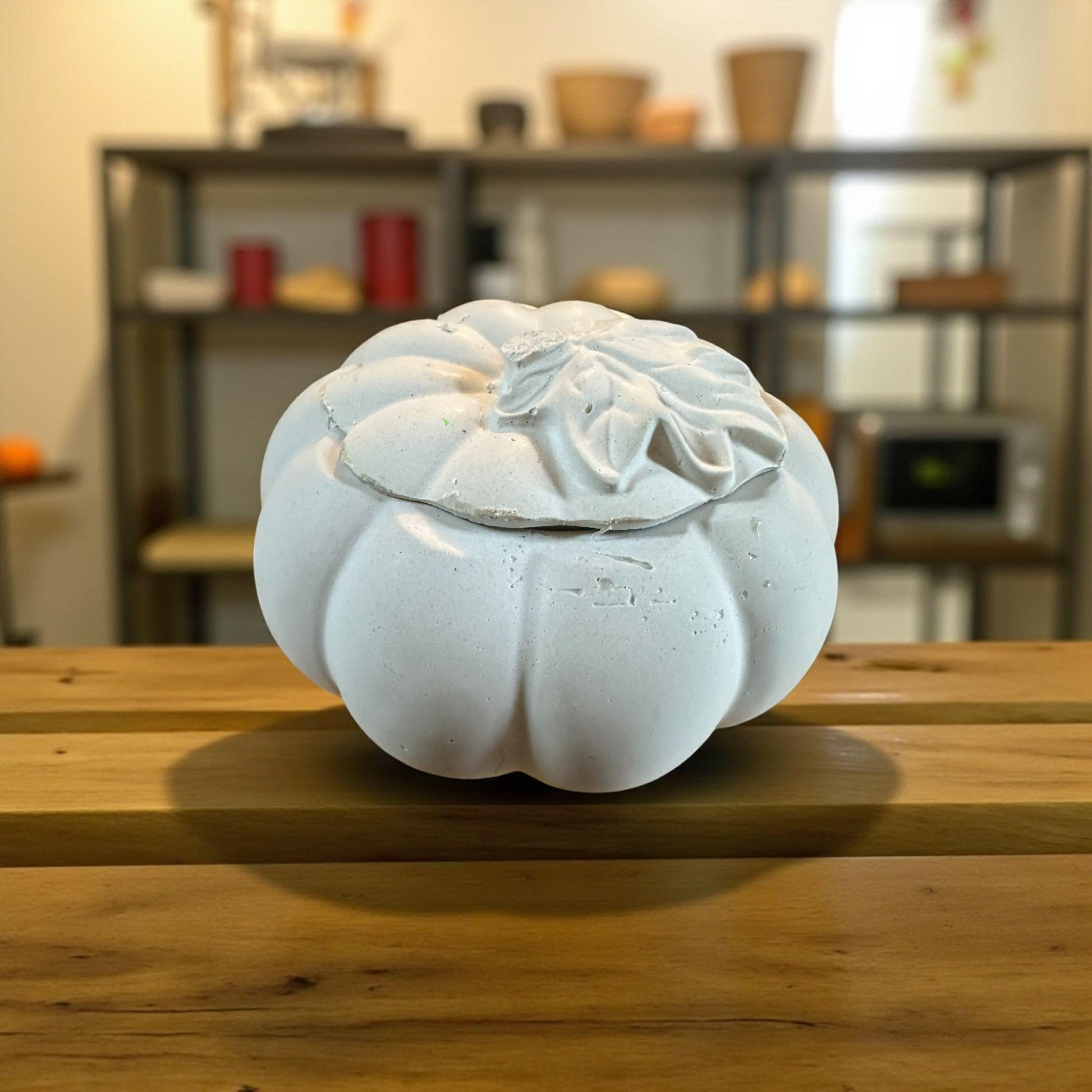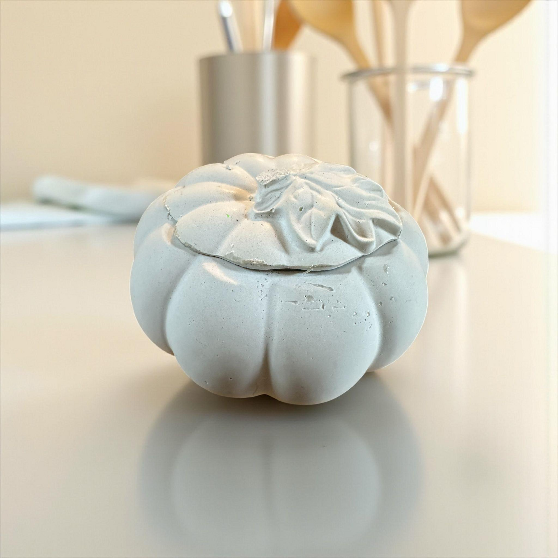 Handmade Concrete Pumpkin Container: Ghost Grey Trinket Dish with Lid