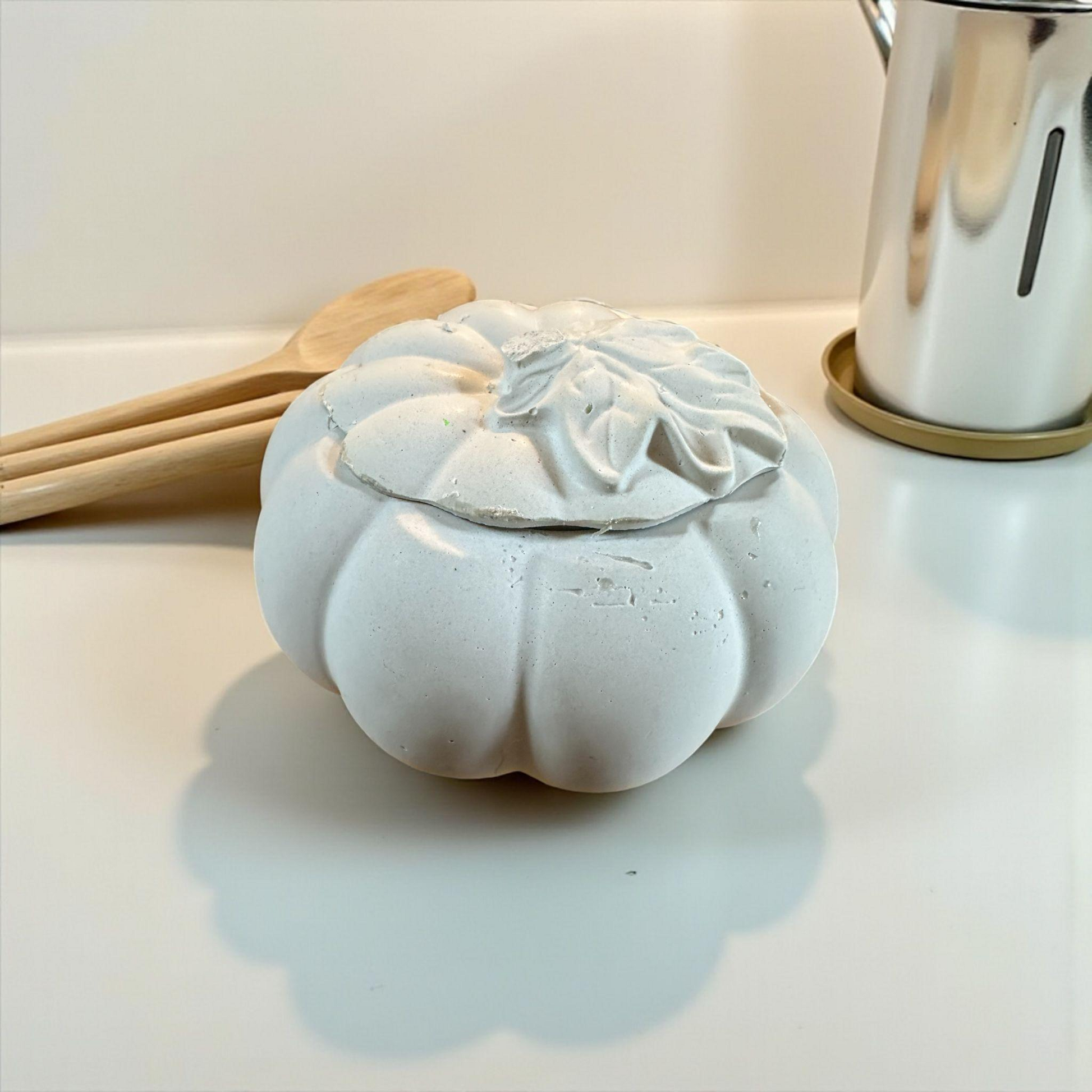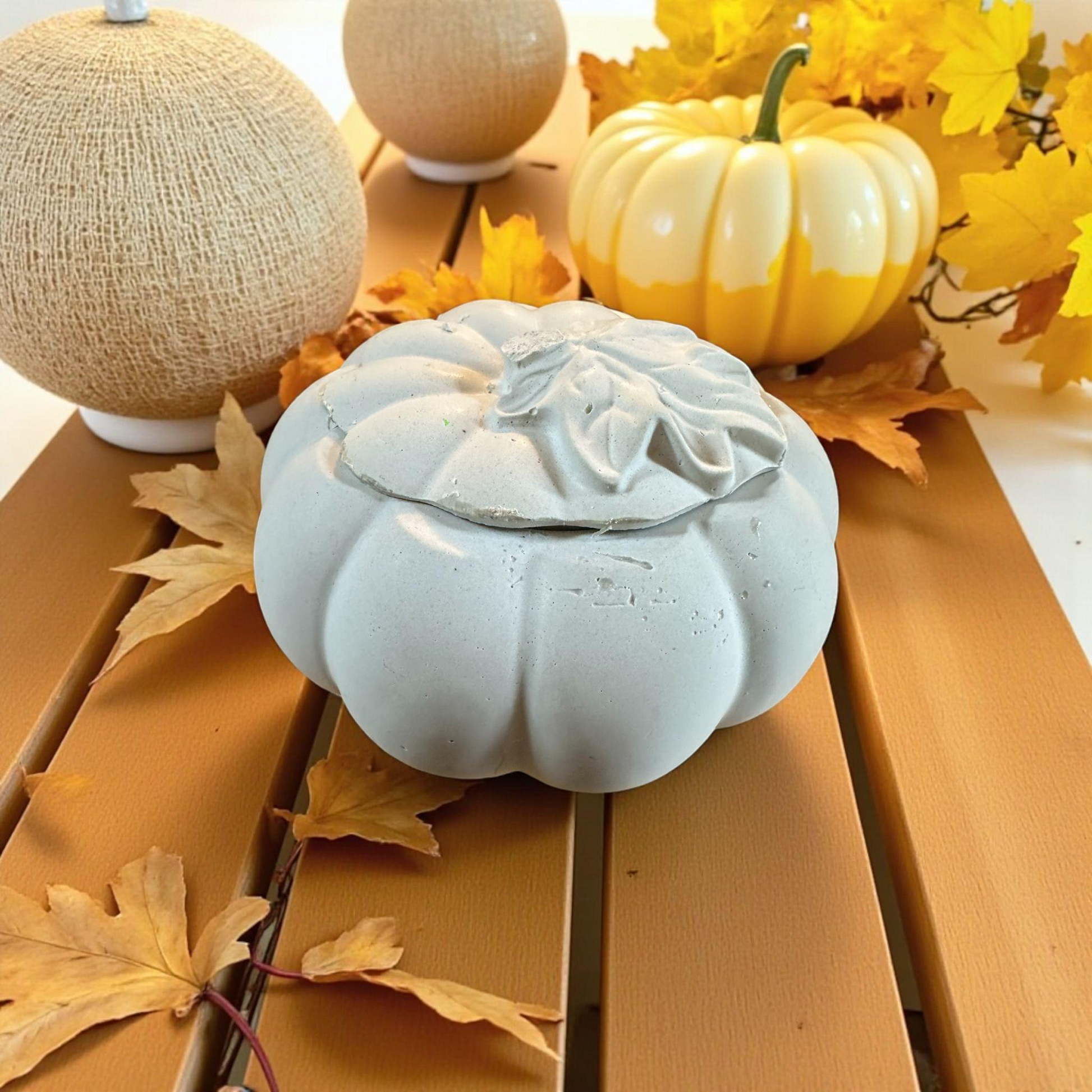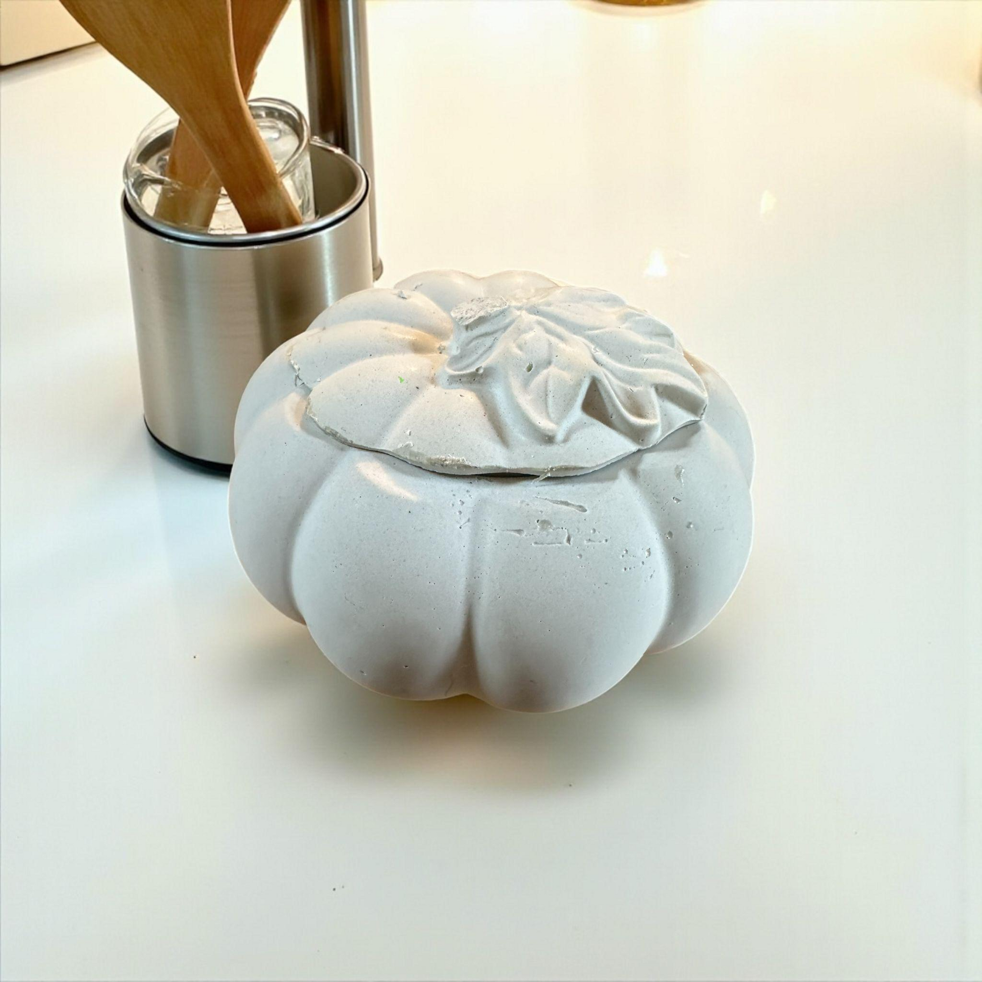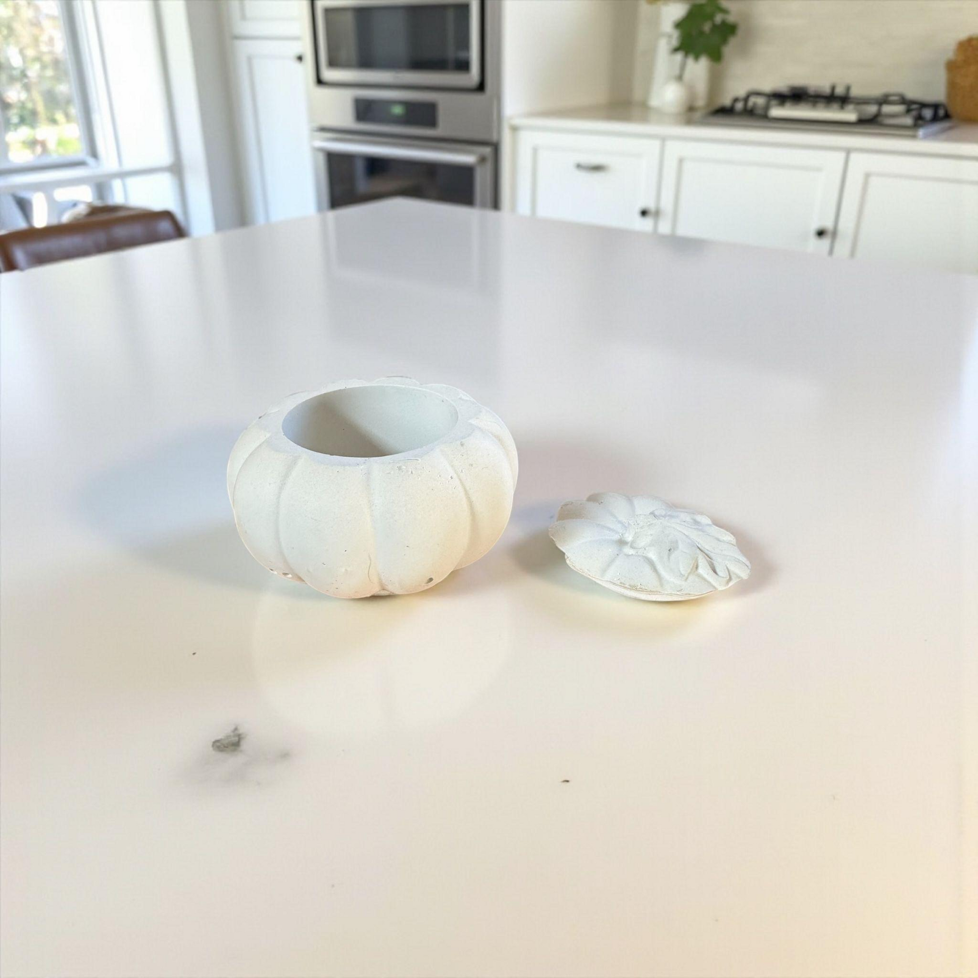 Handmade Concrete Pumpkin Container: Ghost Grey Trinket Dish with Lid