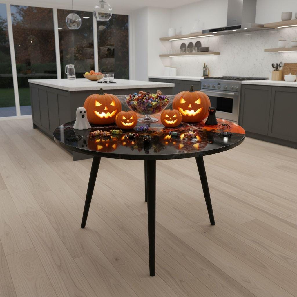 Ready to transform your space with dramatic Halloween artistry? This handmade black and orange resin table brings bold visual impact and versatile functionality to parties, living rooms, entryways, and any space needing statement decor! Perfect as Halloween candy display, party serving surface, coffee table centerpiece, side table top, or wall art installation. The mesmerizing fluid art patterns with lava-like swirls create gallery-quality appearance while the generous 26" diameter offers practical surface space. Unique, substantial, and conversation-starting—order now and own a truly one-of-a-kind functional art piece! Shipping included for worry-free delivery!