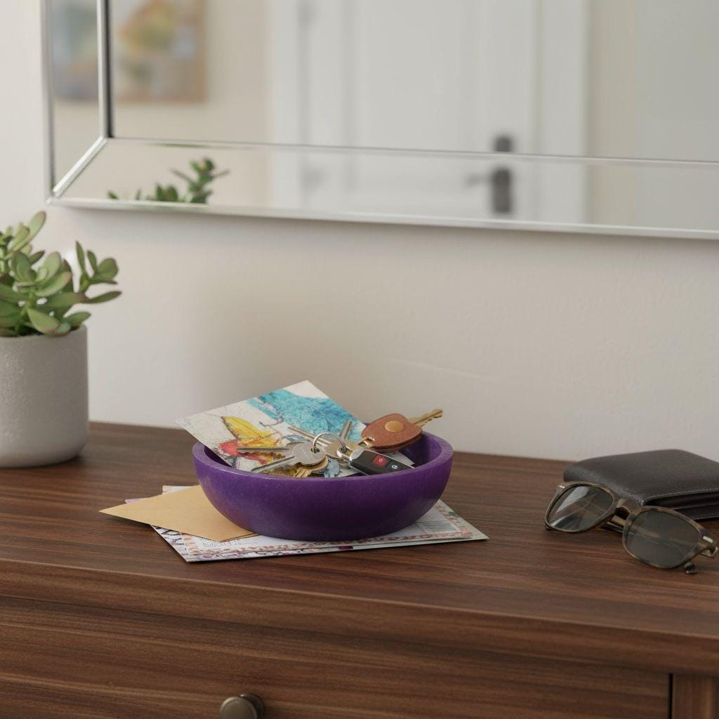 Each bowl is individually hand-poured with unique resin characteristics. Slight variations in purple color intensity, natural swirl patterns, tiny air bubbles, and surface texture make each piece one-of-a-kind—authentic handmade quality that adds to its artistic charm and ensures no two bowls are exactly alike!