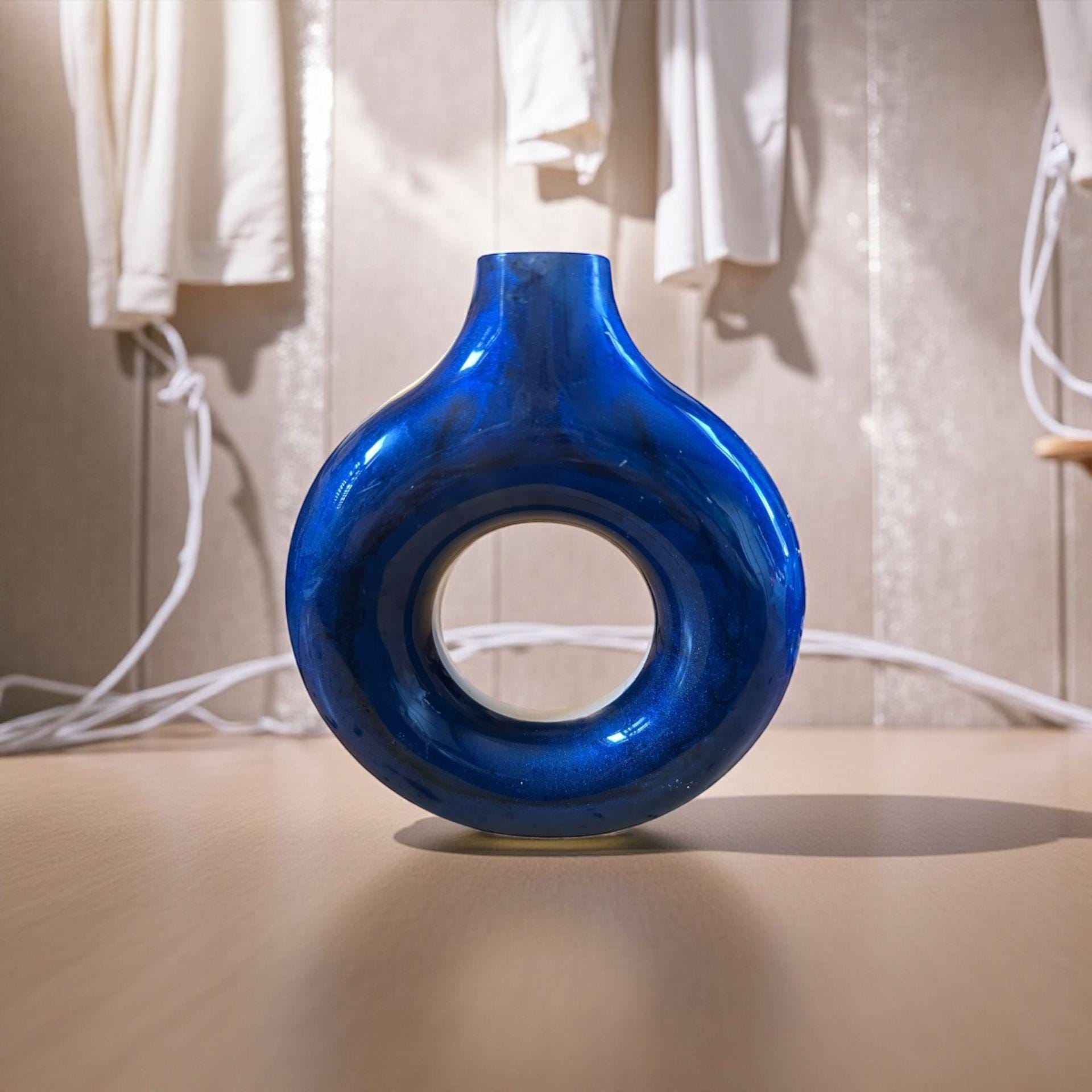 Modern Round Hole Vase, Handmade Resin & Concrete Flower Vase, Minimalist Contemporary Sculpture Decor, Boho Chic Statement Piece