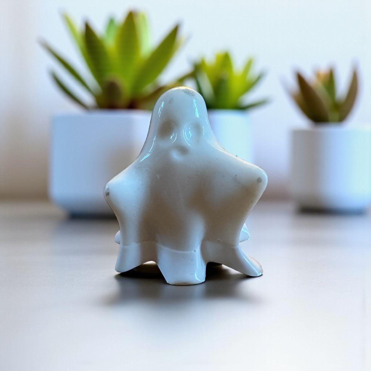 Create a ghost trio display by collecting all three color variations for a stunning seasonal arrangement. Pair with dried flowers, vintage books, crystals, or candles for an enchanting vignette. Mix with autumn leaves, pumpkins, and fairy lights for a cozy fall tablescape. Display alongside tarot cards and moon phase art for a mystical altar aesthetic. Group with other small figurines to create a curated curiosity collection that reflects your unique personality.