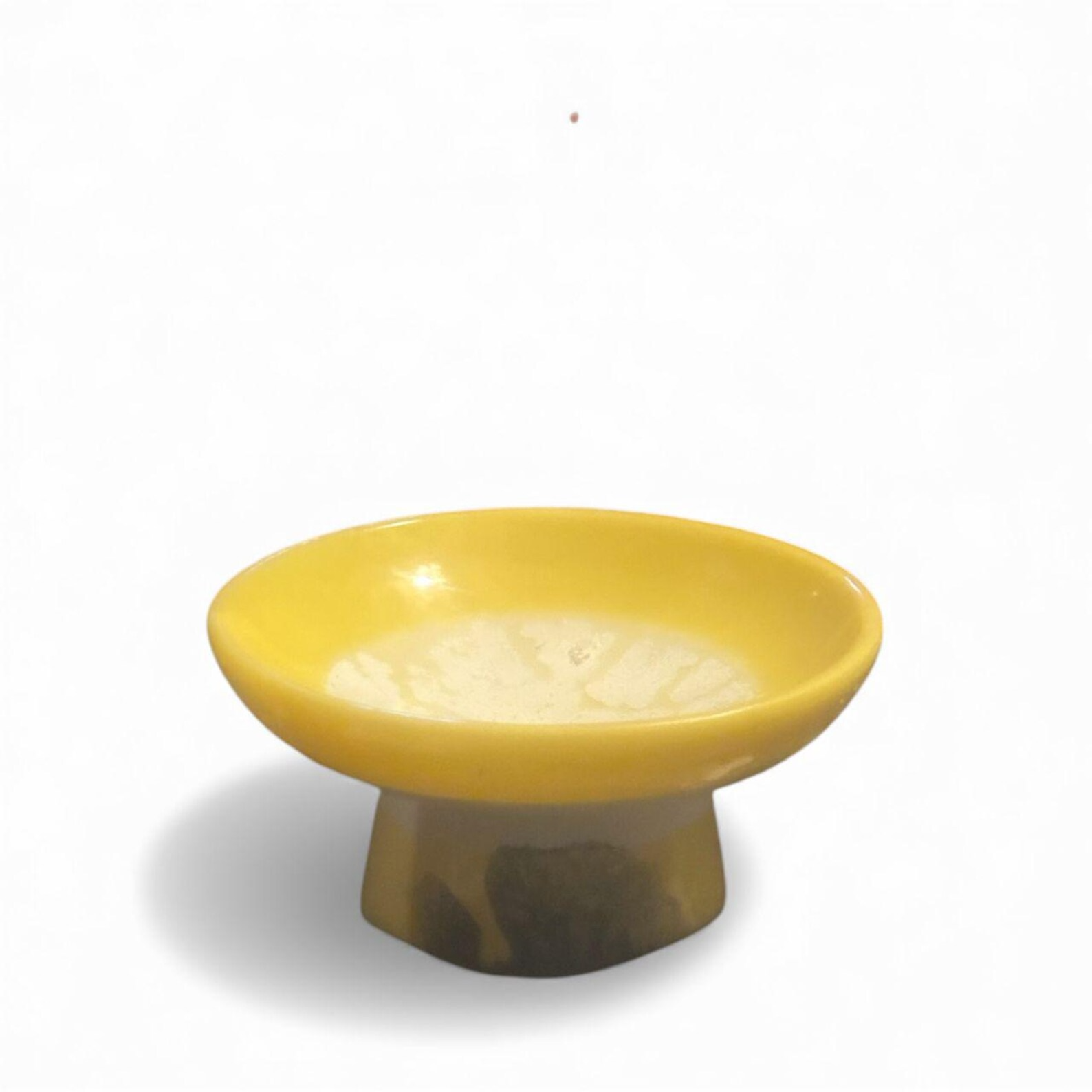 soap dish, pedestal bowl, food safe dish, yellow bowl, jewelry holder, serving dish, bathroom organizer, kitchen bowl, vanity tray, elevated dish, handmade bowl, condiment dish, gift wrapping