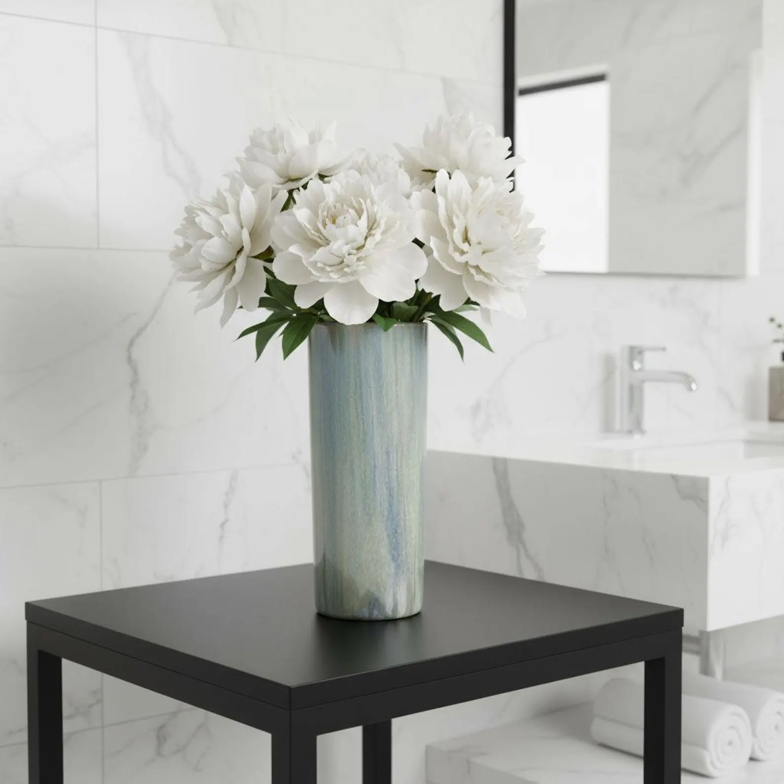 Handmaderesin tall modern cylinder vase, Ocean blue swirl finish, Minimalist centerpiece, Elegant home decor gift