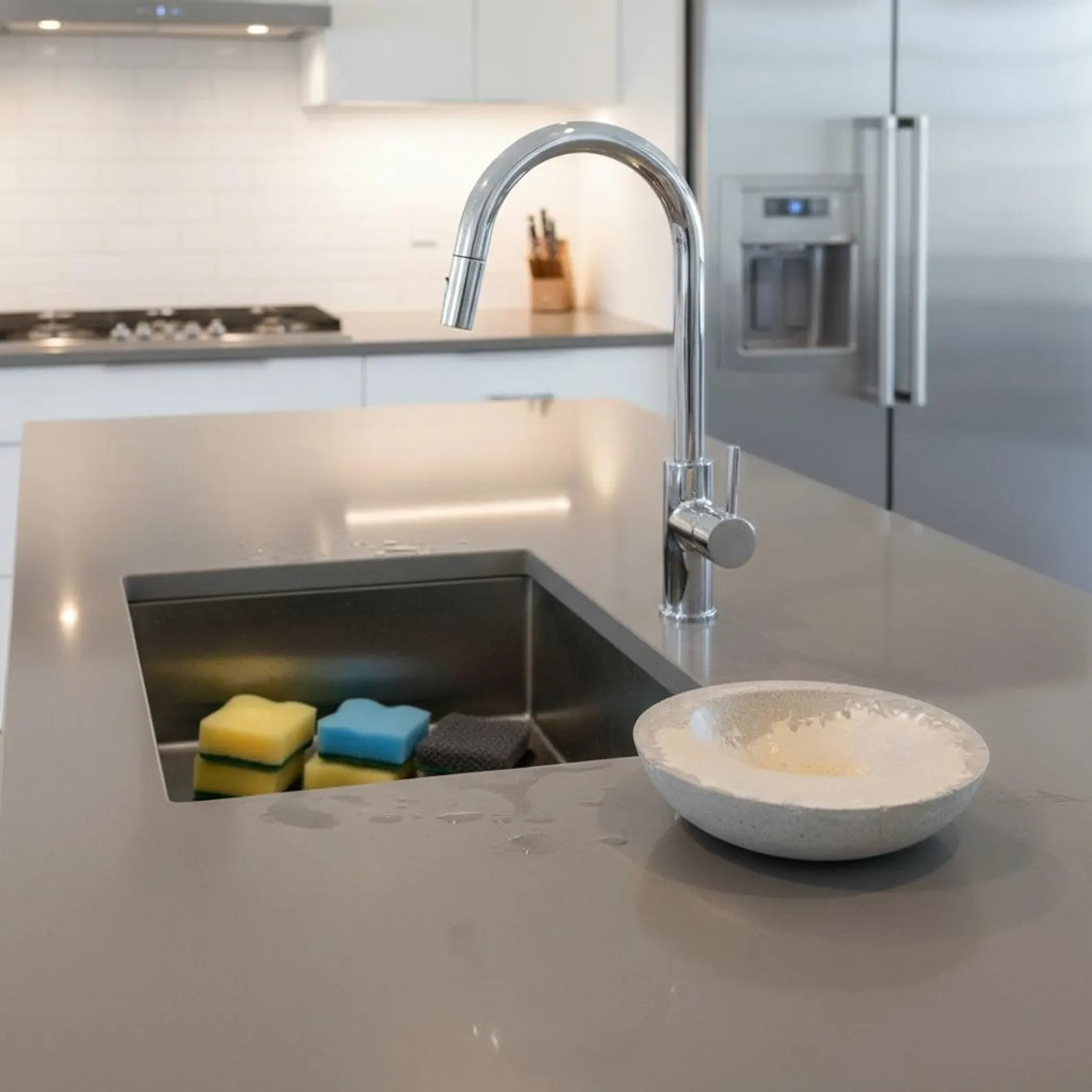 Cement, resin, mineral pigments, silicone mold, non-toxic food-safe sealant, protective topcoat.