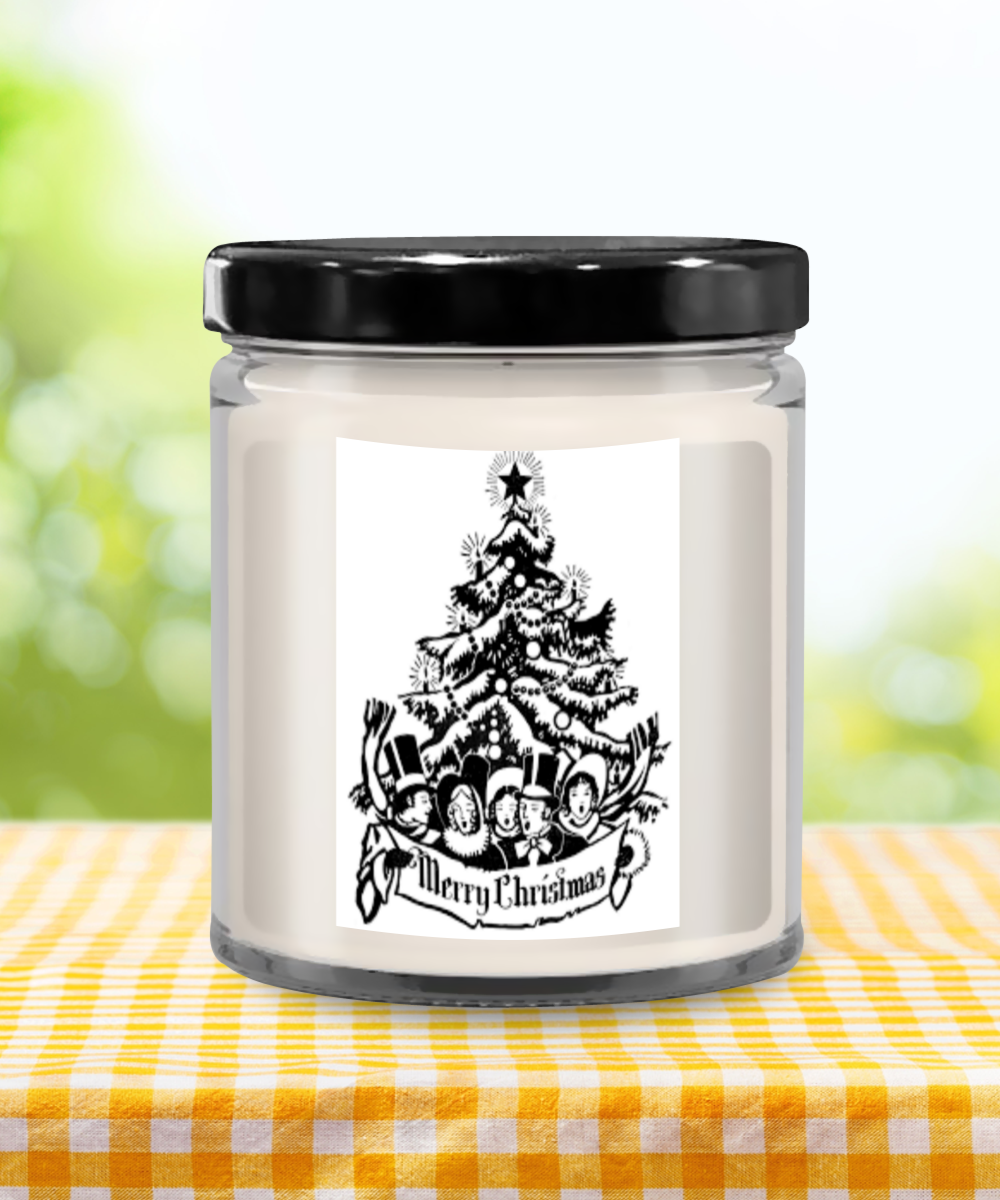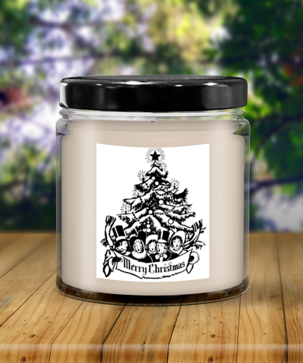 merry christmas candle caroling around christmas tree decoration scents star happy holidays joy cheer x mas gift