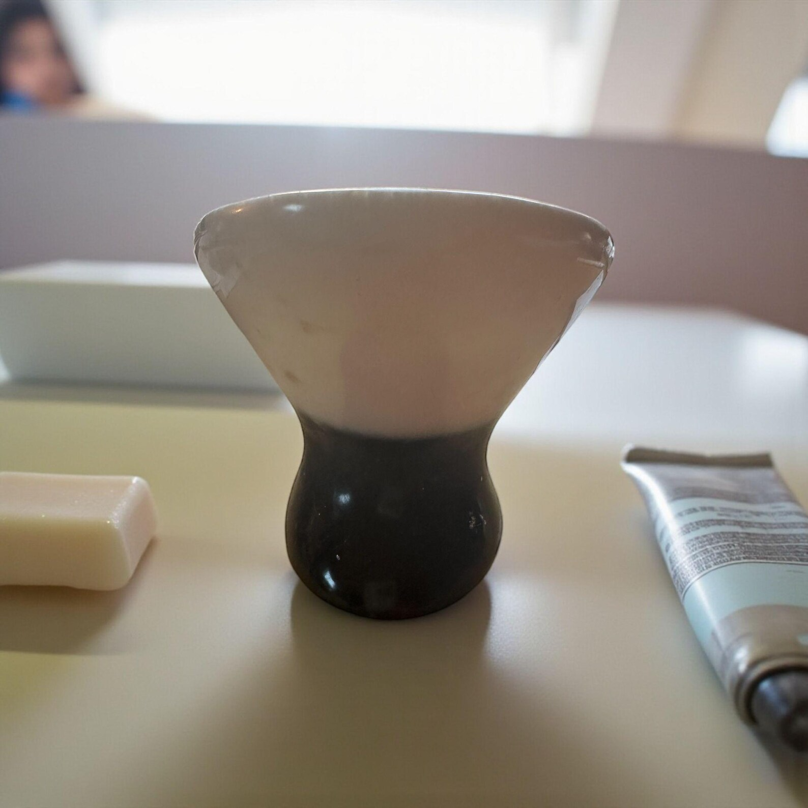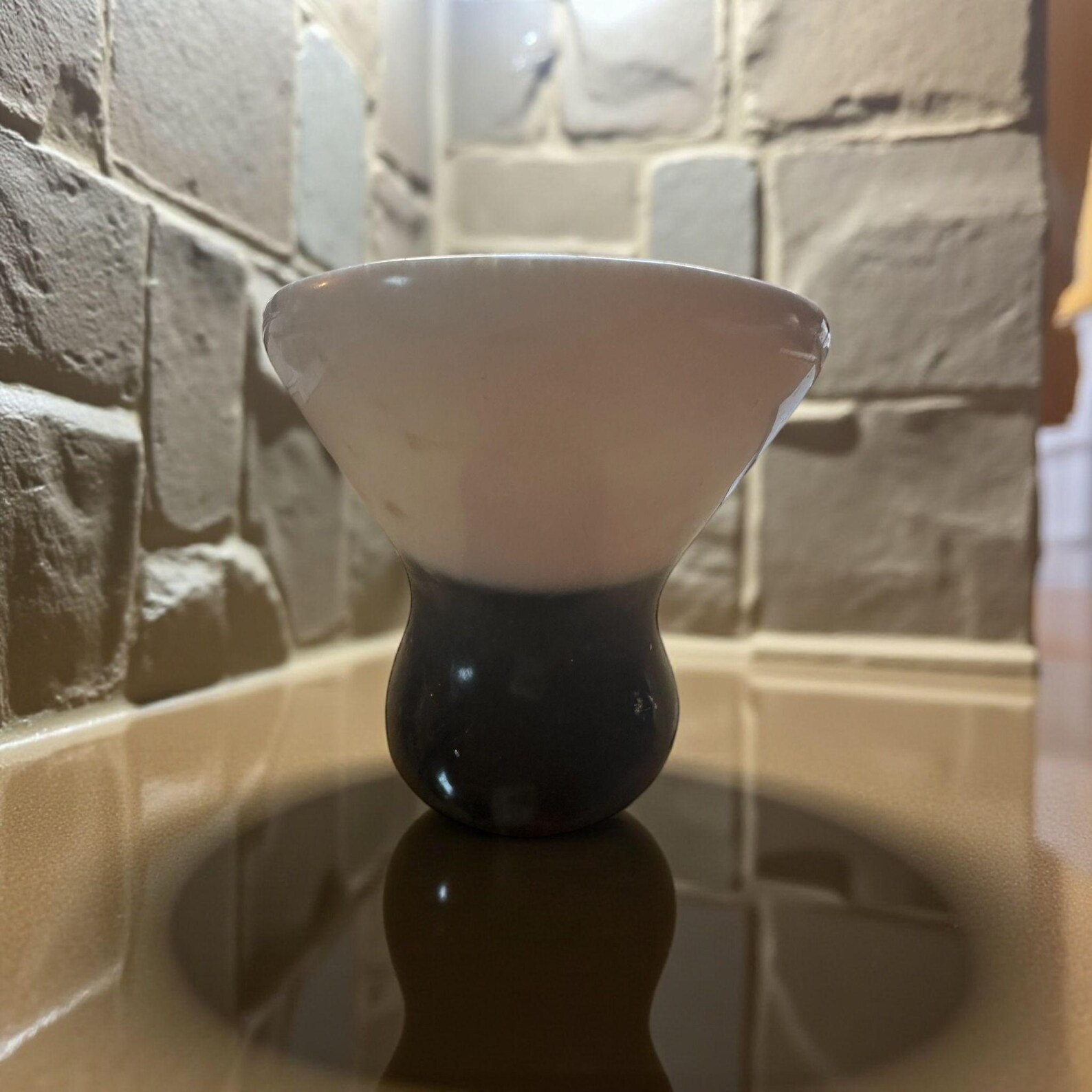 Clear epoxy resin, Black pigment, White pigment, High gloss finish, Hand poured, Silicone mold, Non-toxic resin, Durable, Two-toned, Modern style, Minimalist design, Vanity accessory, Custom blend
