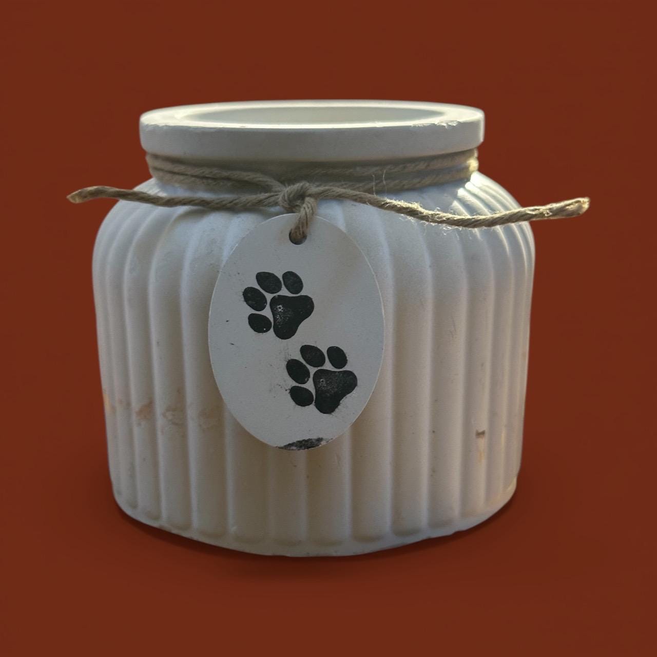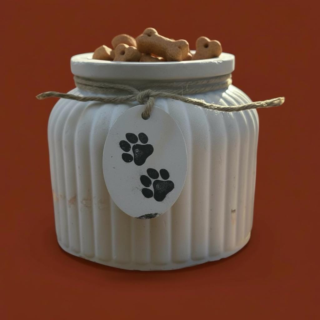 Celebrate a new furry family member with this handmade farmhouse-style dog treat jar, designed as the perfect new puppy or dog mom gift. With its soft neutral tone, ribbed texture, and charming paw print tag, this treat canister blends beautifully into any kitchen, coffee bar, or pet station.