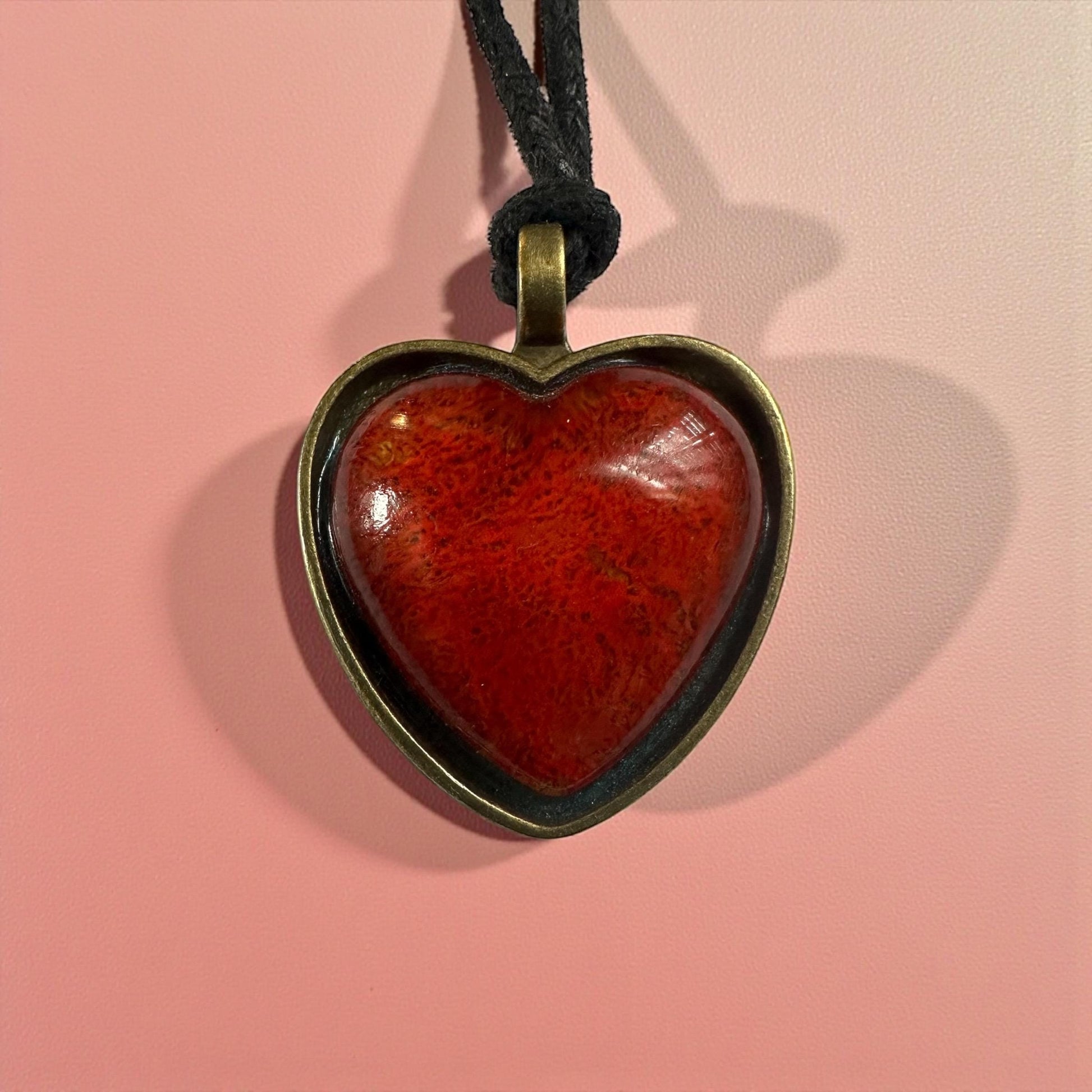 This handmade red heart pendant necklace is a simple yet meaningful piece designed to celebrate love, connection, and special moments. The glossy red heart is carefully set in a metal bezel and finished with a soft cord necklace, creating a timeless style that’s easy to wear and easy to gift.