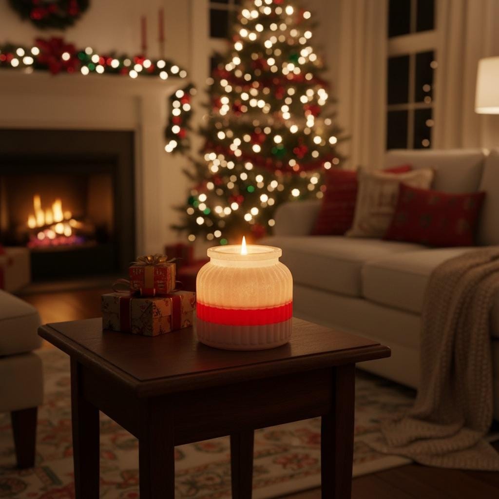 Designed as a decorative container, this jar works beautifully as a holiday centerpiece accent, seasonal décor vessel, or minimalist storage jar throughout the winter months and beyond.