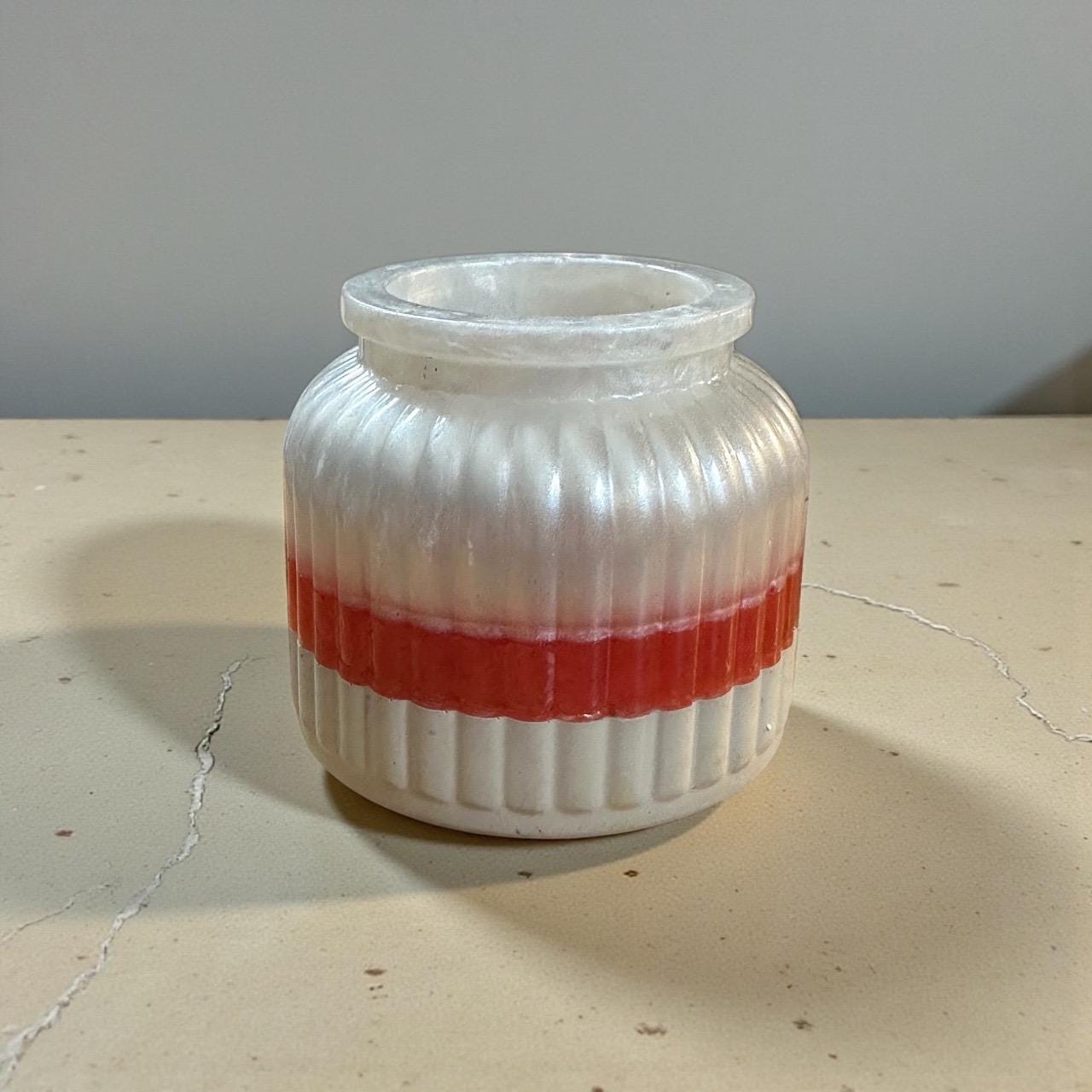 This handcrafted resin and cement Christmas jar features a modern ribbed texture and festive color band, making it a versatile piece for holiday styling and year-round décor. Each jar is individually poured and finished by hand, giving every piece subtle variations that highlight its handmade character.