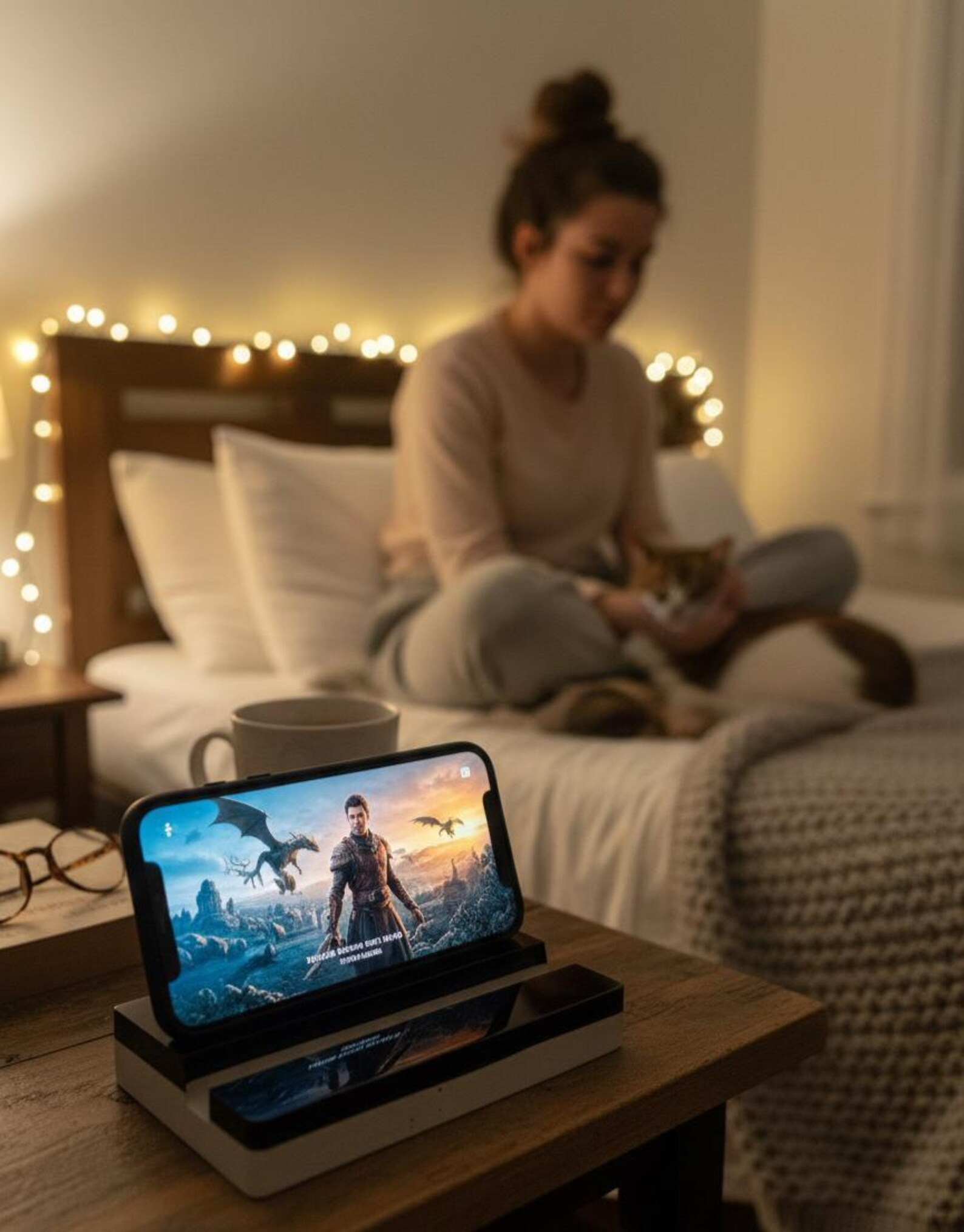 Dual Orientation Support: Works beautifully with phones placed vertically for scrolling or horizontally for video watching and landscape mode