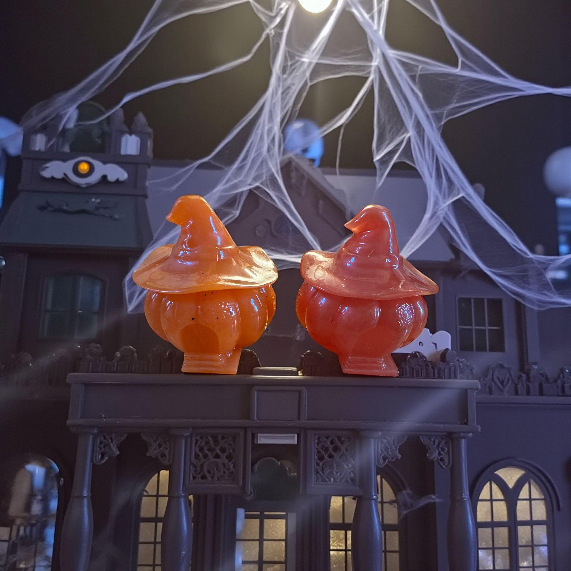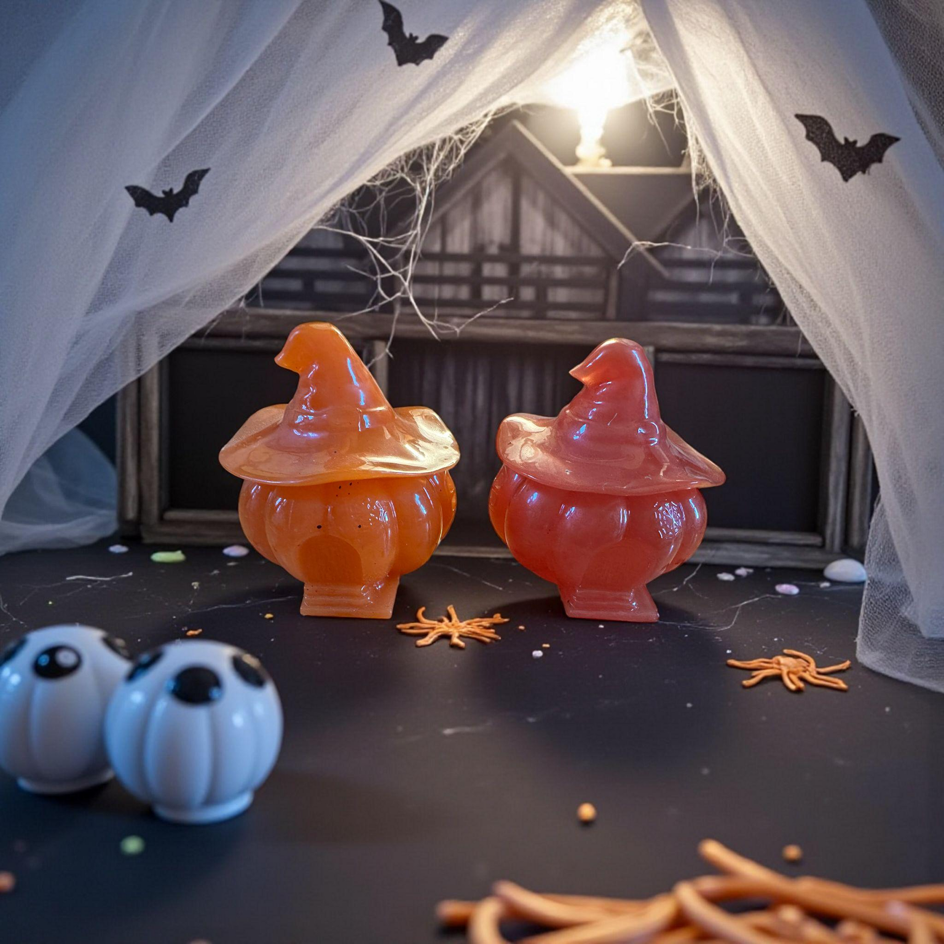 Handmade resin, Premium casting resin, Translucent resin, Orange resin pigment, Red resin colorant, Hand-poured resin, Polished resin finish, Glossy resin coating, Durable resin material, Non-toxic resin, Witch hat lid design, Removable lid, Gift wrapping included
