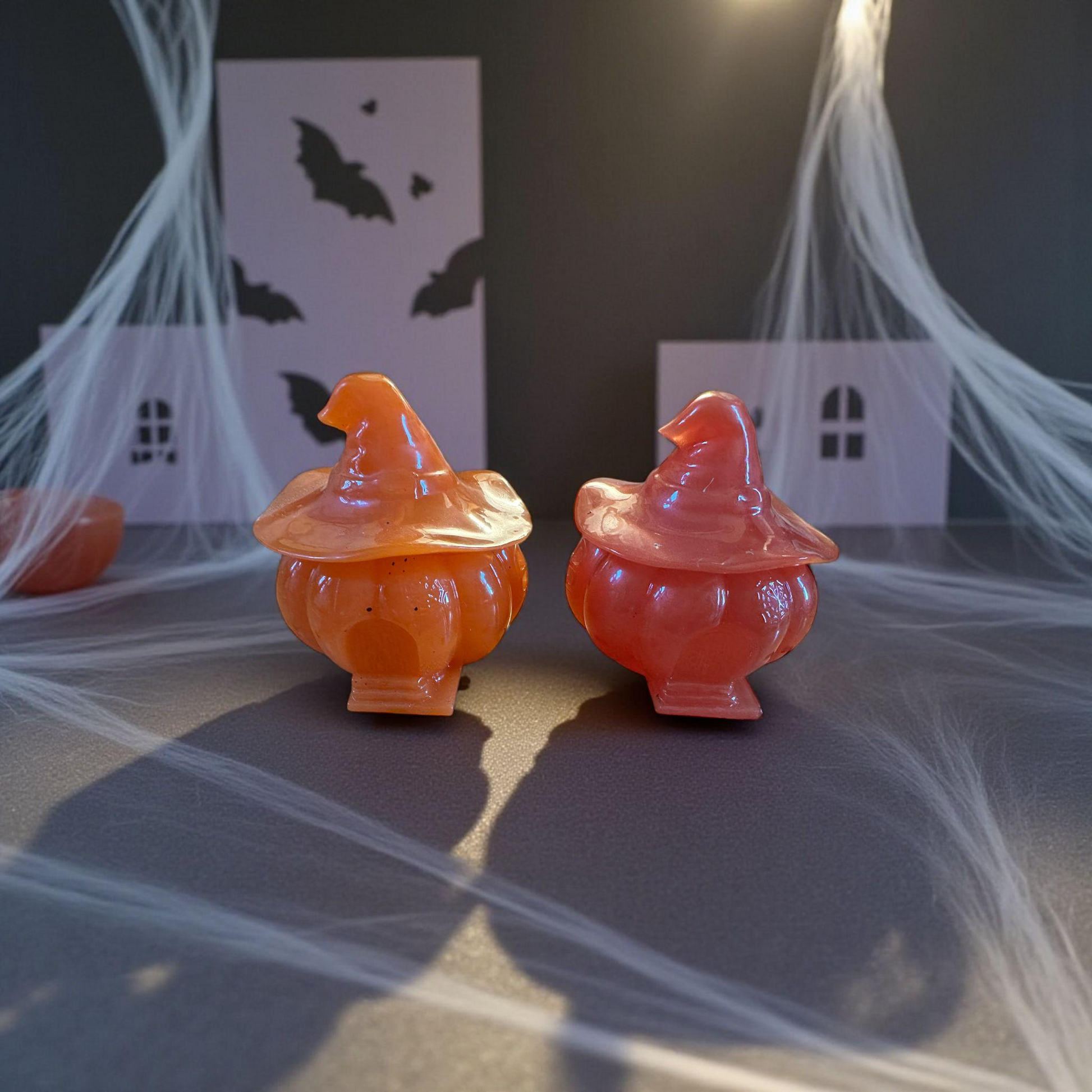 Brew up some Halloween magic with these absolutely enchanting handmade resin pumpkin cauldron containers! These whimsical pieces combine the classic charm of a pumpkin with the mystical allure of a witch's cauldron, topped with an adorable removable witch hat lid. Available in mesmerizing translucent colors—vibrant orange and rich red—each cauldron glows beautifully when placed near light, creating an enchanting ambiance perfect for the spooky season. This isn't just decorative magic; it's functional too! The removable witch hat lid reveals interior storage space perfect for candy, jewelry, trinkets, or your own secret potions. Whether you're a witch aesthetic enthusiast, Halloween decor collector, or simply love unique handcrafted pieces, these magical cauldrons add personality and practicality to any space.
