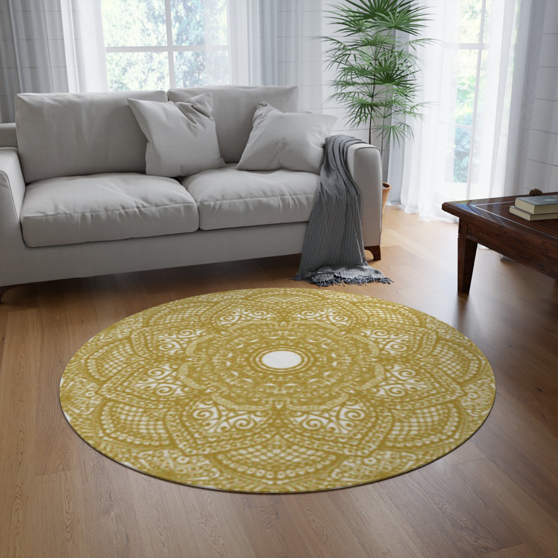 Round Rug golden pattern round gold rug luxury carpet circular gold carpet decorative gold mat gold ornamental rug intricate pattern rug